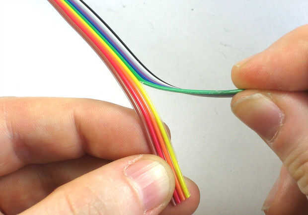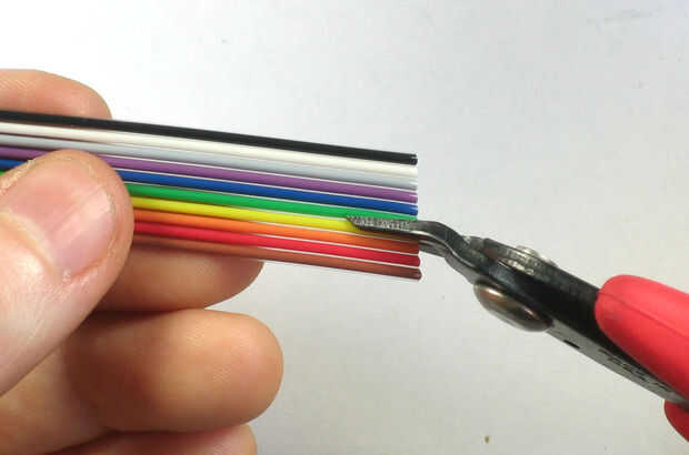 Volver al cable de cinta de 4 piezas. Dividir los extremos con la herramienta de corte diagonal, luego Pele y 8 todos los extremos de la lata.