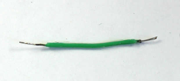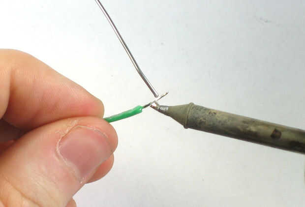 Luego el cable verde calentando los extremos de un hilo y aplicando un poco estaño para enlazar juntos el cable trenzado.