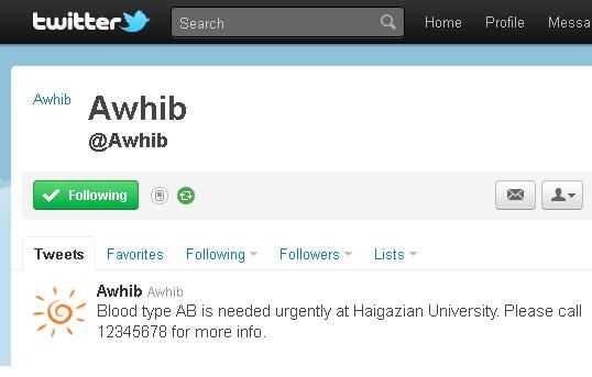 Tenemos un micro controlador leyendo las entradas en todo momento, con cada botón de entrada correspondiente a un determinado tipo de sangre. cuando su prensado el microcontrolador envía un flujo de datos a la computadora señalización que cuenta con un botón presionado e indica que uno a un programa de computadora que se ejecuta en segundo plano. el programa de computadora entonces automáticamente hace su deber y entradas la información requerida a twitter y los demás, minimizando así el tiempo toma contacto con el personal y maximiza la visibilidad del mensaje en un tiempo récord.