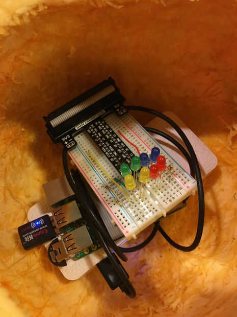 Para tener una calabaza independiente, estoy usando aUSB adaptador inalámbrico para conexión a internet y la batería portátil para el Hardware. Me han dejado la frambuesa Pi corriendo fuera de este banco de energía 13000mAh y me alojé más de 16 horas con el LED parpadeando.