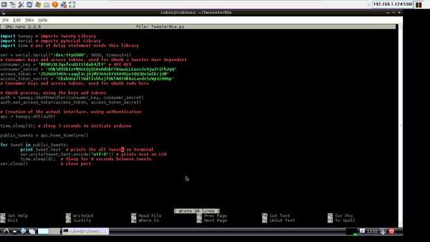 # Editor del archivo: GNU nano 2.2.6 archivo: TweeterBie.py