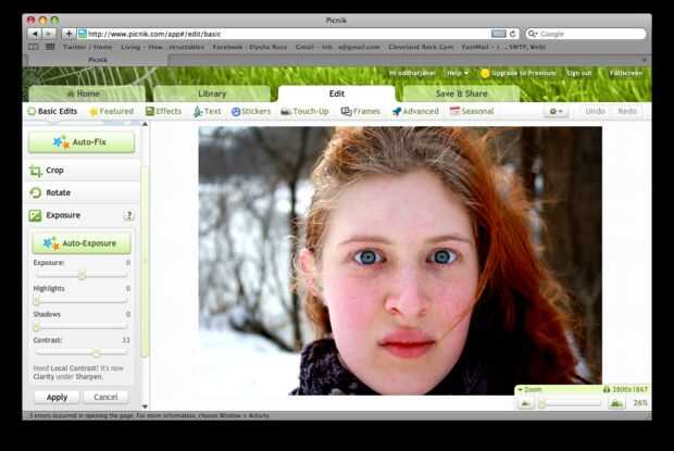 Sube tu foto en Picnik. Puede cambiar el tamaño si es un archivo muy grande. Una vez cargado, ir a ediciones básicas en la barra de menú. Seleccione la exposición en el menú de ediciones básicas.