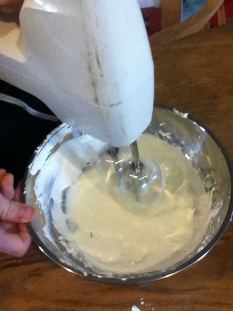 Combine 1/2 taza crema de malvavisco, 2 T. sin sal mantequilla, 2 cucharaditas en polvo de azúcar y unas gotas de extracto de vainilla. Batir con una batidora eléctrica a alta hasta que esponje. Añadir la mezcla de agua sal y mezclar.
