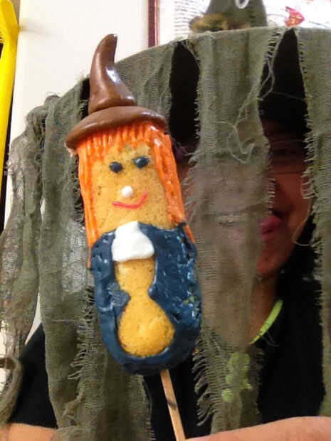 Esta vieja bruja tiene una parpadeo la verruga en su nariz. Si pisas demasiado cerca (según lo determinado por un transductor ultrasónico Ping), ella se cacarea a un saludo, hará girar su sombrero y sus ojos destellará siete colores.Blumcaw se puede