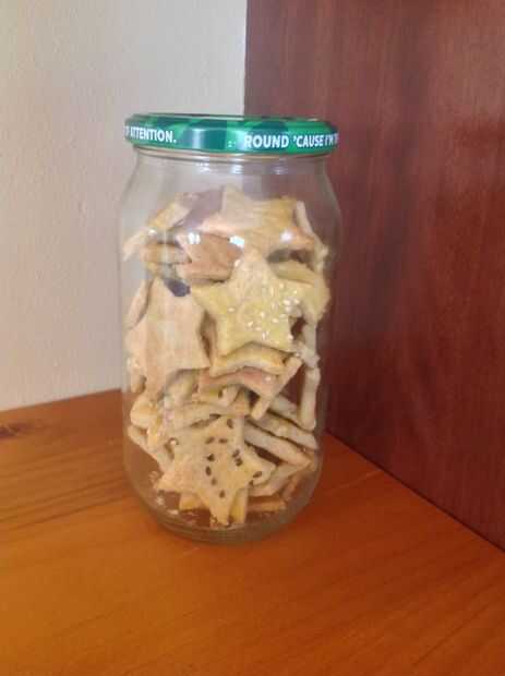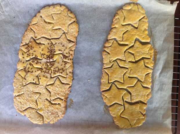 Cuando esté frío al tacto, las estrellas se desintegraría cuando retiras el papel de pergamino. Aquí o allí puede ser que un par de galletas tiene que romper por las manos.