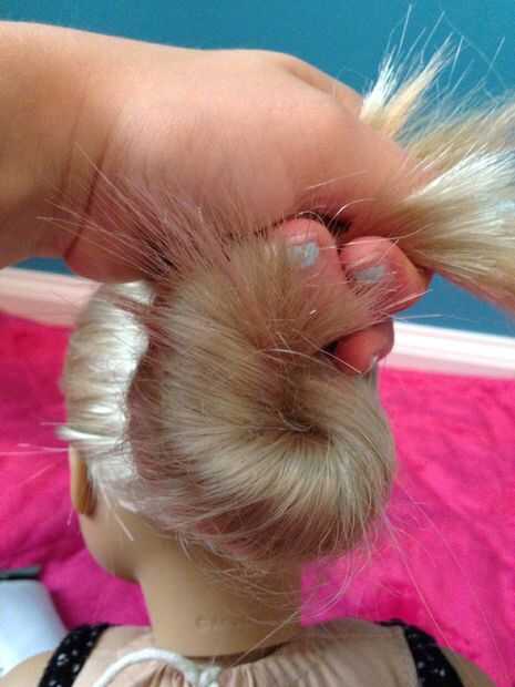 Continuar girando y torciendo su pelo en un moño, como se muestra. Mantenga un agarre muy firme sobre tu cabello.