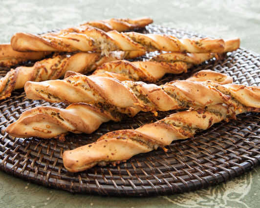 espolvoreados con ajo y queso parmesano, estos picos son muy suaves y ricos en sabor. Agregar una parte de salsa marinara, y estos picos será apagado las paredes! Sirviendo estos grisines cursis sería perfecto con una pasta suave y cremosa. Sentarse