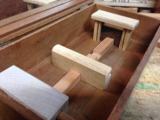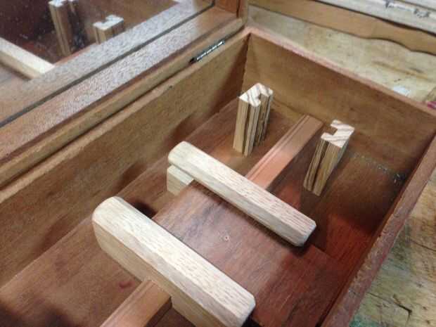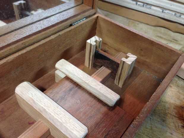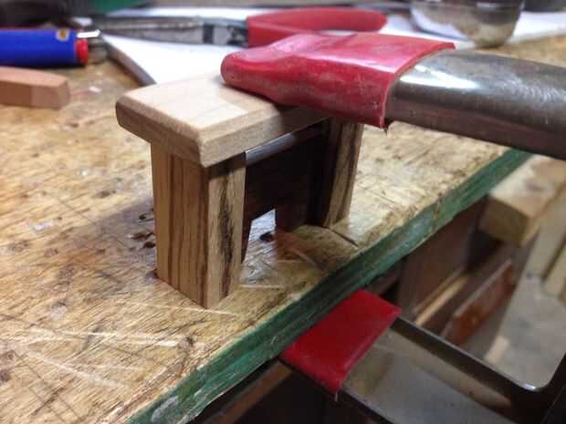 Usando un par de madera dura que tenía una ranura a través de él, usé un par de piezas que mide aproximadamente 1 1/2" de largo. Corté un trozo fino para viajar dentro de las mortajas de los montantes de la guillotina.