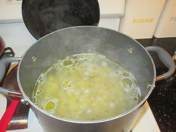 Una vez que has picado sus verduras y todas esas cosas, el agua es muy probable que estar hirviendo. Seguir adelante y añadir los fideos que has usado para el agua.