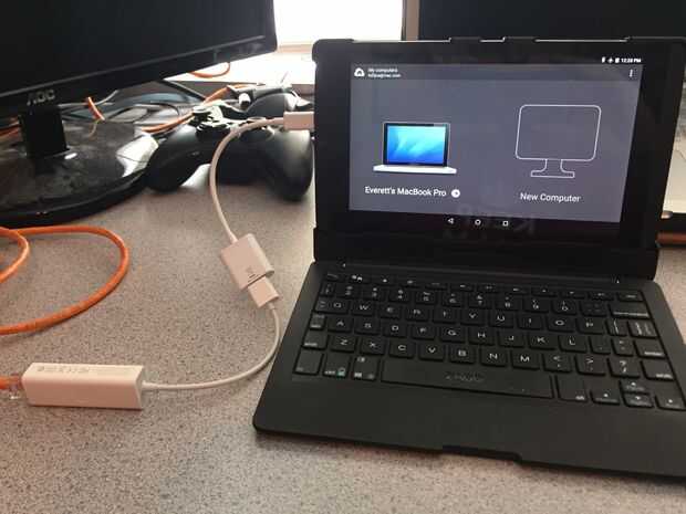 Un cable ethernet está conectado en el dispositivo Android a su OS X basada en computadora (la plataforma de juegos de azar).