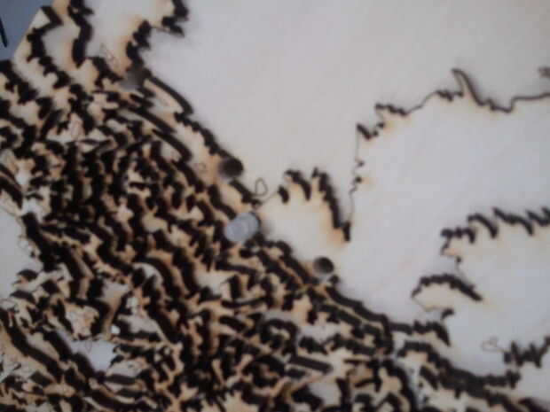 4. conectar los LEDs. Alimente los cables de los LEDs a través de los agujeros en el mapa. El bulbo debe quedar en la capa superior del mapa. Conecte los LEDs en los conectores de 4 pines, asegurándose de que los conductores del LED coinciden con usted por cable para el conector.