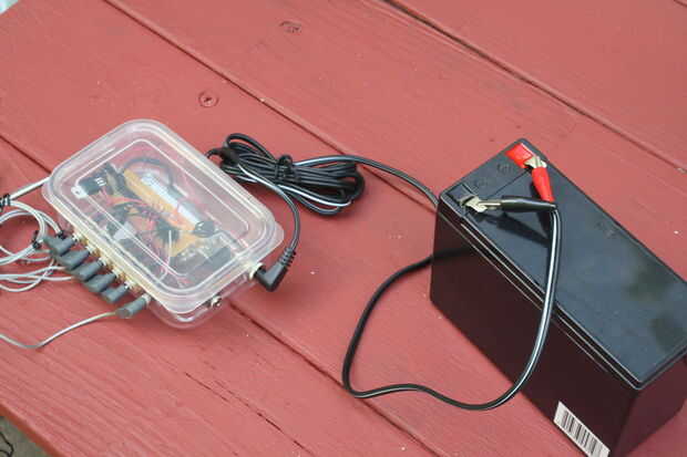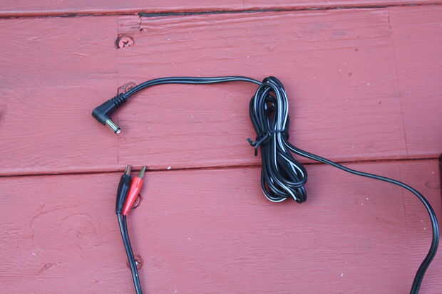 El cips de cocodrilo a un cable de dos conductores con una toma de corriente en el otro extremo de la soldadura. Utilícelo para conectar la masa al controlador.