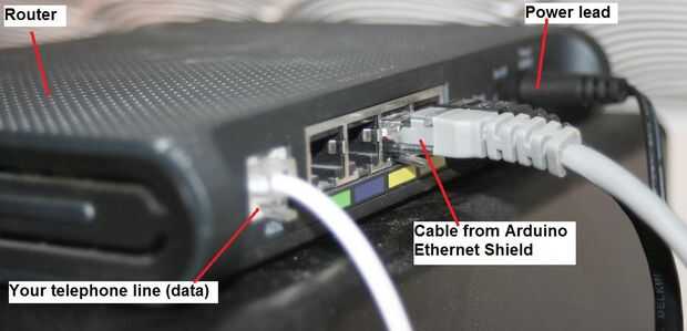 Esta foto muestra el otro extremo del cable ethernet va de shield ethernet en la parte posterior de la caja de su router