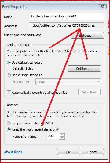 Finalmente, aparece el cuadro de propiedades e interior es su Twitter RSS feed código de 9 dígitos, anótalo en algún lugar para insertar en el sketch de Arduino.