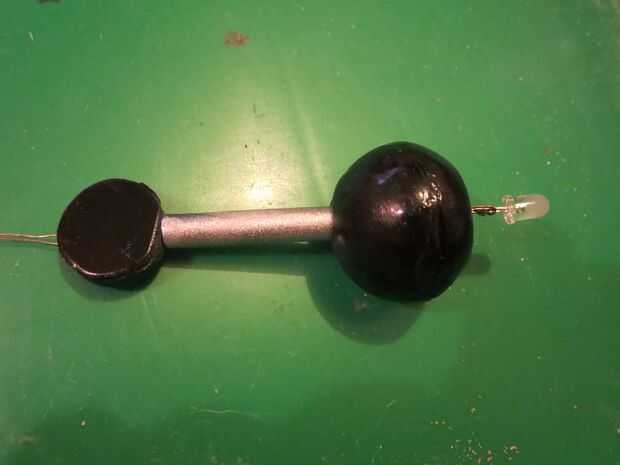 El ojo está hecho de una solo 1 1/2" esfera de madera, comienza por cortar aproximadamente 1/8" fuera del centro de la misma (Foto 2) y luego pegar las dos de mitad espalda con madera plástica (un relleno de madera). A continuación perfore un 1/4" completamente aunque el centro del ojo, luego una 1/2" agujero cerca de la mitad forma aunque. Rematar por el extremo que tiene el orificio de 1/2" como la segunda foto de corte/lijado y pintando.