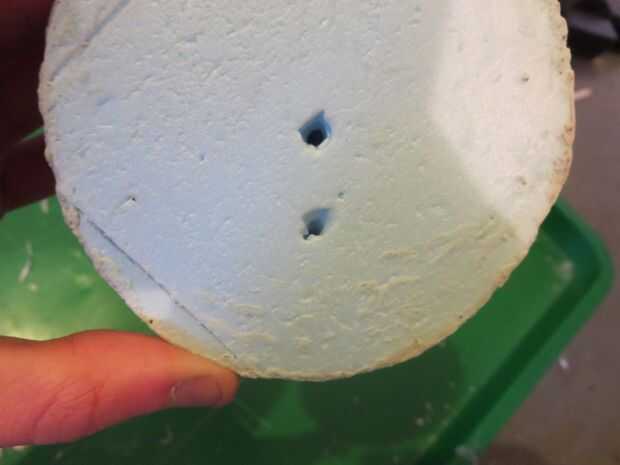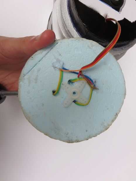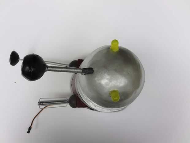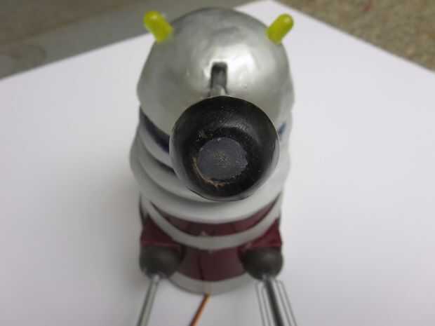 Para finalizar la cabeza que tendrá que cortar una ranura que la base del tallo ocular puede perfectamente encajar en y perforar un orificio en la ranura para los cables desde el ojo del tallo para ir aunque. La siguiente cosa a hacer es perforar dos agujeros que van todo el camino aunque la cabeza para que las luces de "oído", he encontrado un tornillo estrella diver funciona bien para esto. Después de usted ha hecho todo eso, pegue un horn de servo en el centro de la cabeza y luego, pegar los leds de "oído" en lugar. El último paso es conectar los cables negativos de todos los cables juntos y los aspectos positivos de los leds de dos "oído".