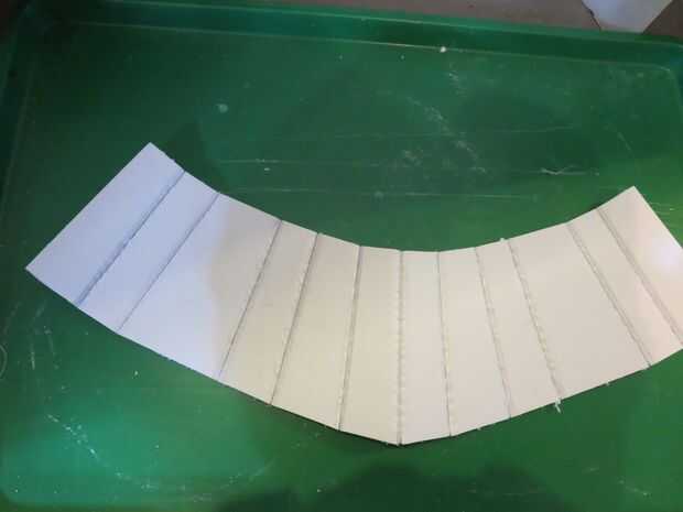 Lo primero que tienes que hacer es imprimir apagado todos los PDF que se adjunta a este paso, algunos de ellos son demasiado grandes para imprimir en una sola página, así que tendrás que utilizar impresión de cartel se describe aquí. Después de que han hecho, aproximadamente las recorte y luego pegar ligeramente en su base de espuma con pegamento stick por lo que fácilmente puede eliminarlos más adelante. Antes de empezar a cortar todo, asegúrese de que tiene una afilada hoja de su cuchillo o la base de la espuma que ni corta bien. Utilizando los cuadros sobre el y esta útil guía para construcción de base de la espuma, comienza a recortar todas las piezas. Son las únicas partes que tienes que hacer nada distinto a cortar, Base.pdf, Skirt.pdf y SkirtTop.pdf. Para el el puntaje base y falda en las líneas se muestra en las fotos, como se describe en la página 4 de la guía. La parte superior de la falda deberá quitar la primera capa de papel y la espuma como se muestra en la segunda imagen y describe en la página 5 de la guía.