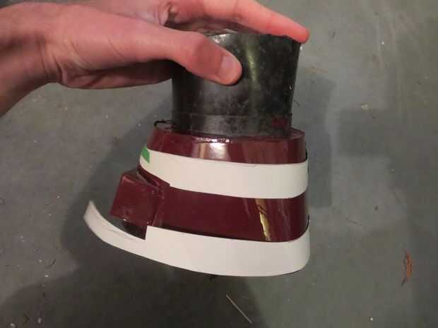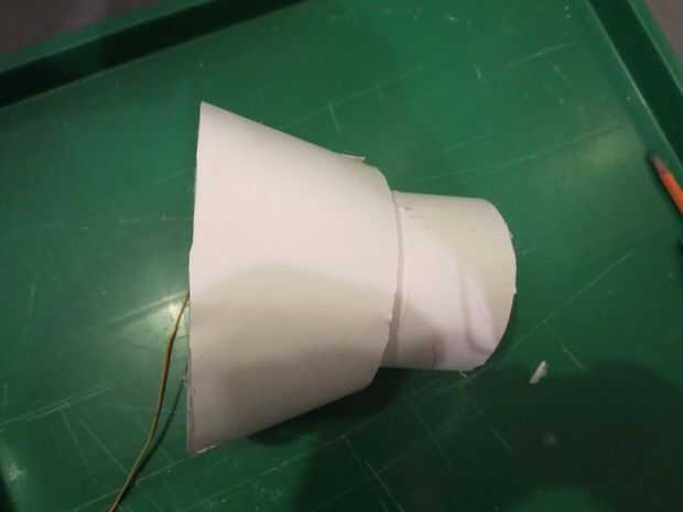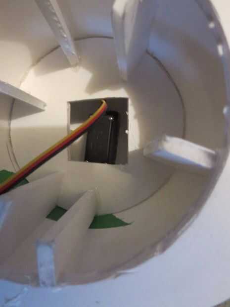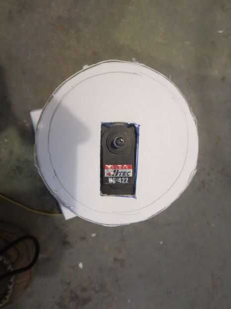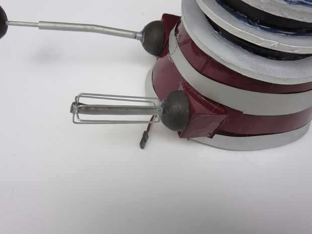 Comience por colocar un servo, por lo que el eje esté centrado con la parte superior de la neck(second pic). Entonces usted necesitará cubrir la sección del cuello en cartulina (Fig 5). Una vez que han pintado los hombros, puede hacer que las bandas que pasan a su alrededor de la cartulina. Hice estos por primer corte otro pedazo de cartulina de la misma forma que el que se utiliza para cubrir la sección del hombro. Después de marcaron como deben cortarse según los planes. Lo último para los hombros es pintar las bandas y luego pegarlos a las secciones de hombro.