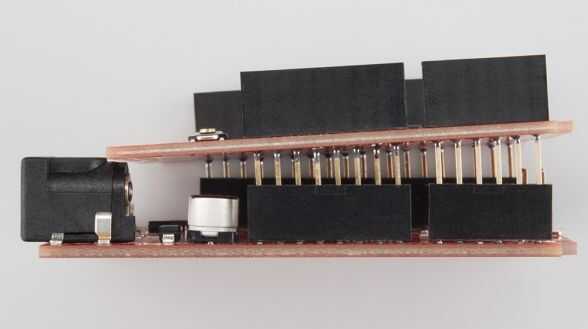 Vas a tener que soldar los headers apilables a la Junta. Esto no debería tomar mucho tiempo dependiendo de tu habilidad con un soldador. Cuando hayas terminado de soldadura, conecte el blindaje a tu Arduino/RedBoard. Ver la imagen en este paso para ver cómo está conectado a la RedBoard/Arduino.