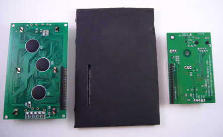 Compañero de la LCD a la #twatch a través del orificio. Poner el sándwich de electrónica/apoyo en el marco de imagen.