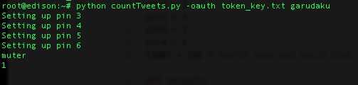 Si alguien subirá tweet "garudaku" se imprimirá la cantidad tweet y la bandera.