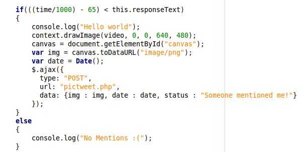 Mientras se ejecuta el programa, podemos tomar fotos con el botón de "snap" para enviar una foto a Twitter, y si nuestra cuenta es mencionada, se saque una foto con la webcam de la misma (en 65 segundos) y luego subir a Twitter, al igual que el botón de "snap" Tweet.