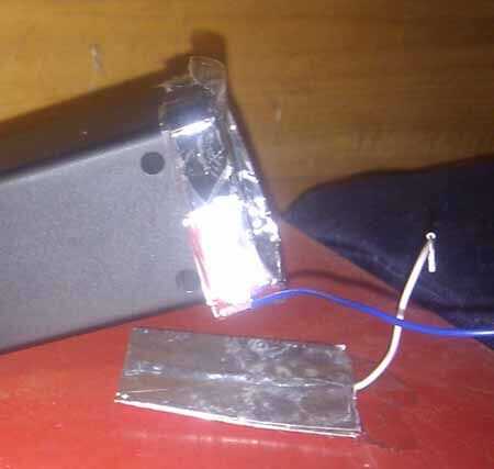 Los contactos son papel de aluminio doblado con un cable insertado en ellos para proporcionar conexión a la Arduino o Arduino board compatible. Los contactos son simple grabado al final de la moustrap y a la plataforma donde está instalado. Tenga cuidado al grabar los contactos para no poner la cinta sobre el borde inferior ya que es lo que se necesita para hacer contacto con el otro contacto. El contacto fijo inferior está conectado a tierra en el tablero de micro, el contacto móvil está conectado al pin de entrada/salida digital 2.