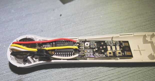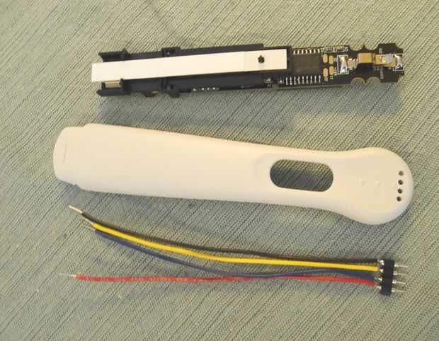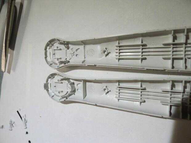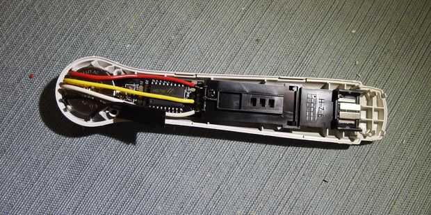 5. corte más plástico en la otra mitad de la cáscara para acomodar los cables.