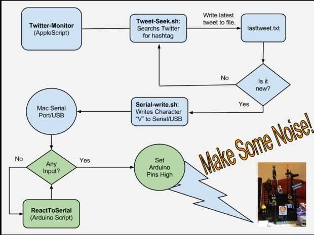 Esto probablemente se podría haber hecho con un simple script PHP o Python en vez de mi desordenada de scripts de shell y un Applescript, pero como he intentado ponerlo junto, durante un fin de semana, esto es donde la combinación de reutilización de lo que he podido encontrar y los límites de mis conocimientos de código hacking juntos.