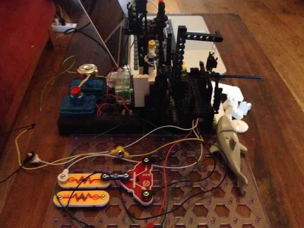 Construí mi circuito con kit electrónico de circuitos Snap de mis hijos, es incluso más fácil que un protoboard y puede integrar el sistema con pines de Arduino usando estos snap-circuito práctico para perno cables.