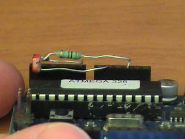 Necesitaba la LDR y el láser para estar en una posición donde ellos no se moverían alrededor así que conecté mi LDR y una resistencia directamente a Arduino sin un protoboard, pero se puede hacer sin embargo, que a continuación son las fotos para soldar y doblar en forma también incluye un diagrama simple.