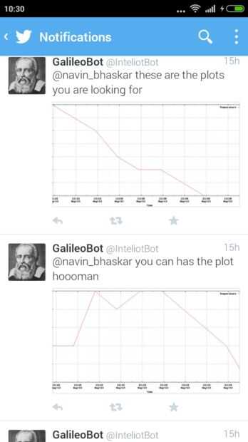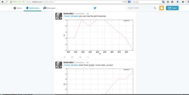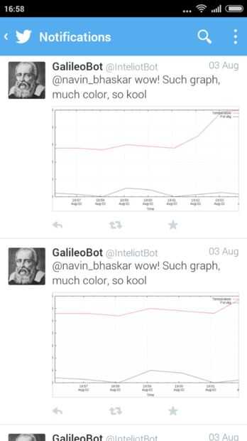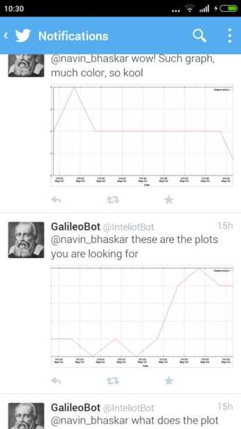 Este bot puede registrar datos y tweet parcelas a intervalos configurables. Los datos que debe ser registrado y posteriormente trazar están configurable por el usuario y por lo tanto, puede registrar cualquier dato que usted desee en registro y parcela. También es posible trazar múltiples fuentes de datos.