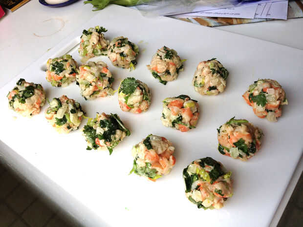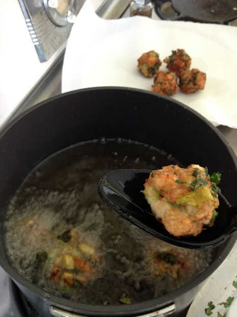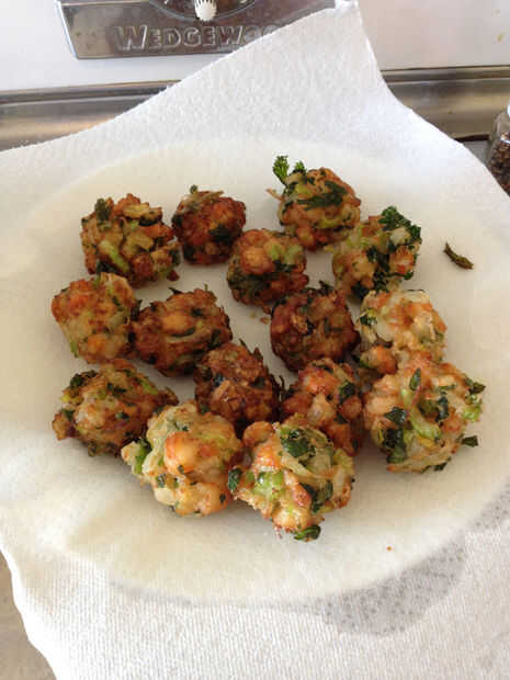Calentar el aceite de canola hasta que un poco de la mezcla inmediatamente Arden y cuando cayó en él. Baje con cuidado las bolas en el aceite caliente, unos pocos a la vez. Cuando estén dorados, retirar con una espumadera y deje que se enfríe en una hoja de toalla de cocina.