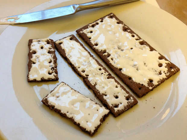 Empezar por trazar sus galletas en un plato de microondas. Esparcir una fina capa de pelusa de la melcocha sobre cada galleta. No ir por la borda; sólo es necesario suficiente para pegar las brocas de Twix para tus galletas. Recuerde: demasiada pelusa puede hacer tu bizcocho duro comer.
