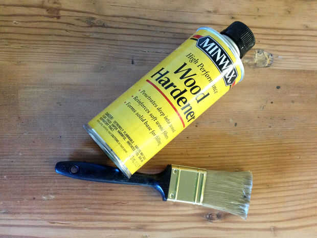 Por primera vez, usé un endurecedor de madera en este proyecto. Has leído cosas mezcladas en línea, pero estoy muy contento con cómo funcionaba. Básicamente una resina muy diluida, el endurecedor de cepillos en fino, penetra y cura en el grano de madera para un acabado más apretado, resistente a abolladuras. Primario a menudo madera, especialmente pino de corazón, es tan difícil que este paso es innecesario.