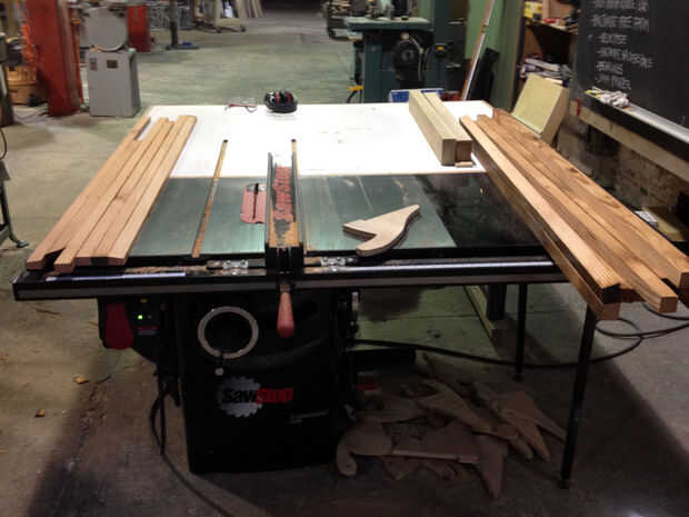 Los marcos de la pierna son altos de 17" y 20" de ancho, hecha de tiras de 1-1/2". Cada uno tiene cinco piezas: una barra superior e inferior, dos postes y un travesaño. La barra superior e inferior son biselados en 5 grados para hacer los marcos de pierna peralte hacia afuera.