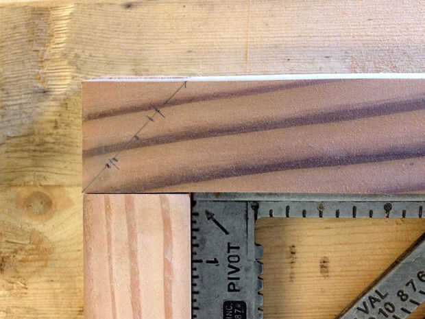 Una vez que esté montado el marco exterior, añadir la barra 8" hacia abajo desde la parte superior de los marcos de la pierna, con el borde biselado hacia arriba, paralela a las barras superior e inferior. Dos 1-1/2" tornillos y pegamento para garantizar hasta el final de grano. Esta no es la conexión más fuerte, pero la adición del estante rejilla reforzará.