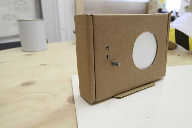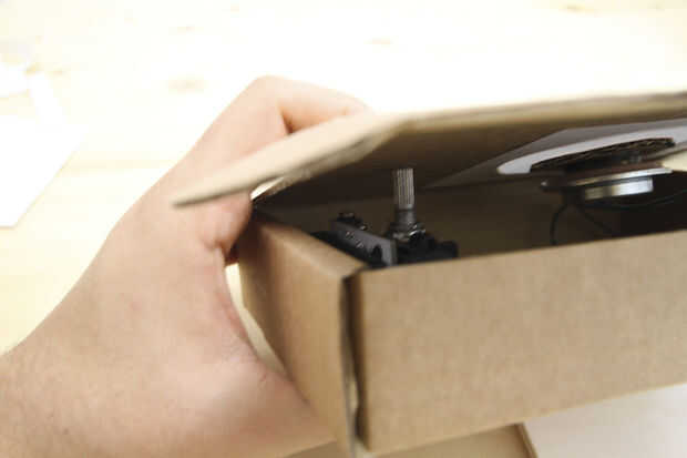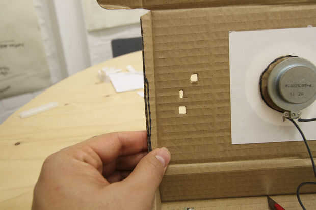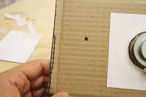 3. utilizando una cuchilla de bisturí o nave, cortamos tres aberturas (uno para el control de volumen), uno para interruptor de encendido y otro para la entrada