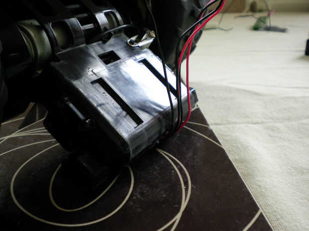 Ahora una vez que has hecho tu pegado en caliente y soldadura te necesitan seguir adelante y volver a colocar las ruedas. (Me olvidé de tomar una foto de este paso). y el chasis por lo que el interruptor está hacia arriba. Entonces usted necesita doblar los alambres que soldado en hacia arriba y sobre el chasis como nosotros a ser posicionamiento el arduino y la batería pronto.