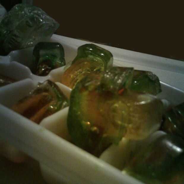 hielo ordinario sólo no, es eso hielo de los años 70! (no se responsabiliza por extrañamente descolorida bebidas) He hecho este sin colorantes, para hacer hielo de mal forma extraña, que parece muy poco habitual en el congelador. (mamá odiaba!)
