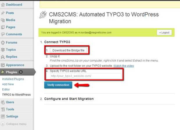TYPO3 para WordPress Plugin de migración: 5 pasos (4 / 6 paso)