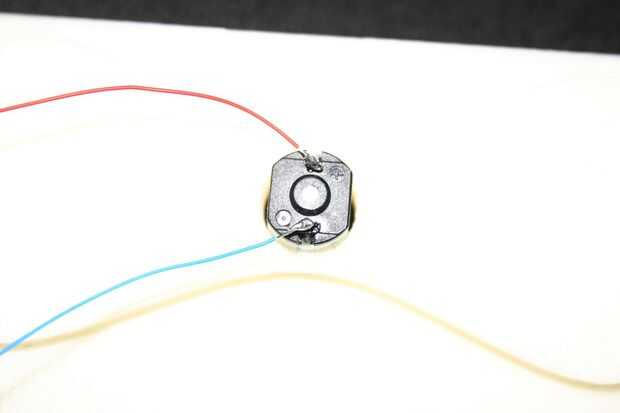La pieza posterior es muy similar a la parte delantera, pero tiene un agujero más grande en la pajarita.  Punto la pajarita hacia adentro y el motor de cola en el agujero de encastre. Pequeña (Yo utilicé alambre de envoltura) de la soldadura del alambre del motor.