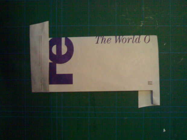 Crear un bolsillo sellando los dos bordes. Asegúrese que las aletas están en lados opuestos de la envolvente. También asegúrese de que el adhesivo no entra en la pequeña solapa que solo cortamos en el paso anterior.