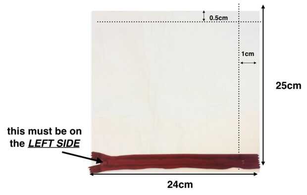 • Lugar la cremallera, en la parte inferior de la pieza cuadrada, ramo lo junto y flip sobre