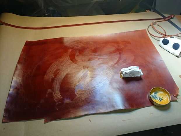 Después de teñir el cuero necesita pulir para eliminar pigmentos exceso. Tras el pulido se aplica acondicionador. El tipo de que uso necesidades en remojo por tanto debe dejarlo reposar varias horas antes de quitar cuál es la izquierda en el cuero.