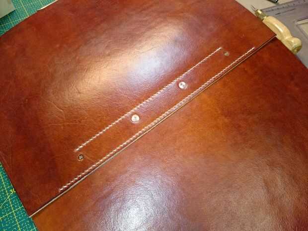 Remache los dos agujeros del mediados para ayudar a mantener todo juntos mientras cose.
