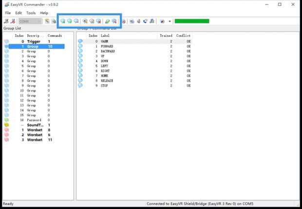 Luego en el grupo 1, cambie el nombre todas las instrucciones y entrenar su voz. Prueba de ellos después de asegurar easyVR puede reconocer todos los datos.