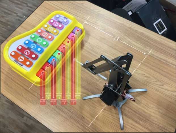Recientemente, hemos realizado un caso de uso que permiten uArm para reproducir música en un piano de juguete.