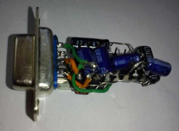 Soldar los pines del conector DB9 al circuito usando pequeños trozos de cables según el diagrama del circuito como las fotos.
