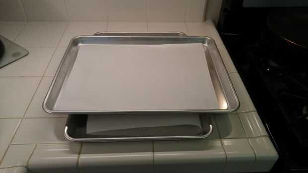 Ajuste la rejilla del horno a media posición y calor horno a 350 grados. Línea de dos hojas para hornear con papel pergamino.